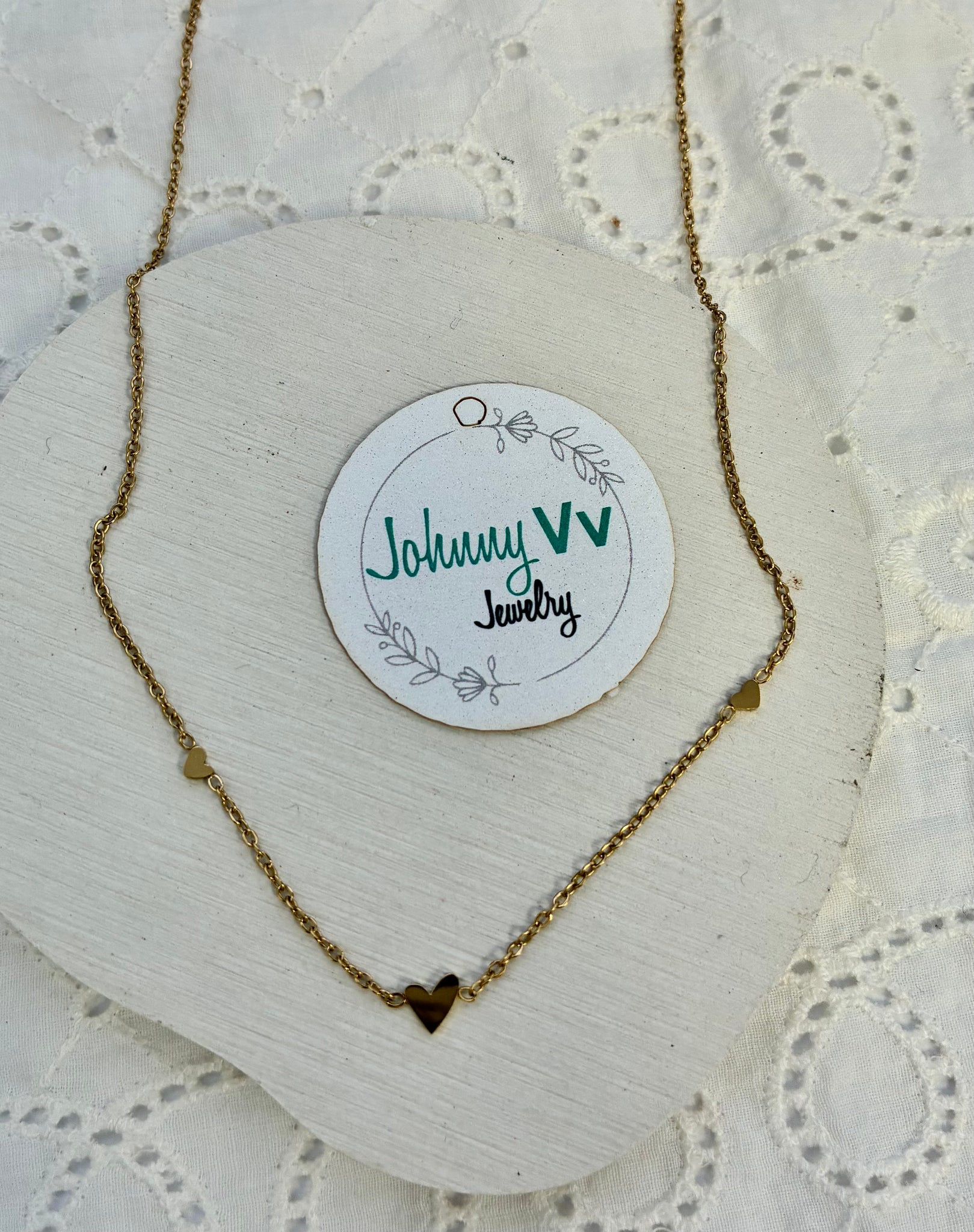 Delicate and fine. This new Victoria necklace is a minimalist must have. The sweet accents of hearts make this beauty a must have.